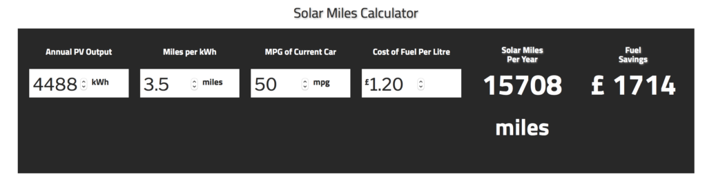 The savings become even more significant if you take the fuel costs of a traditional internal combustion engine into account. The figures of our Solar Mileage Calculator show that the combination of a solar PV system with the replacement of your fossil fuel burning car with an EV become economically very attractive!